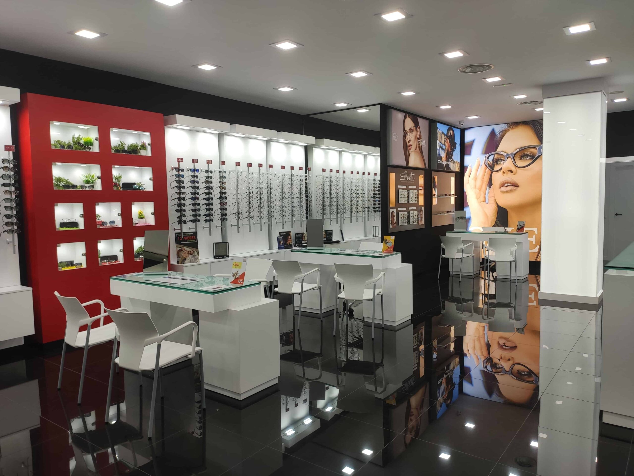 Nuestras instalaciones están pensadas para que te sientas a gusto en ellas: aunque tenemos una amplia exposición de gafas de sol y graduado, disponemos también de mostradores para atenderte sentados y sin prisas.